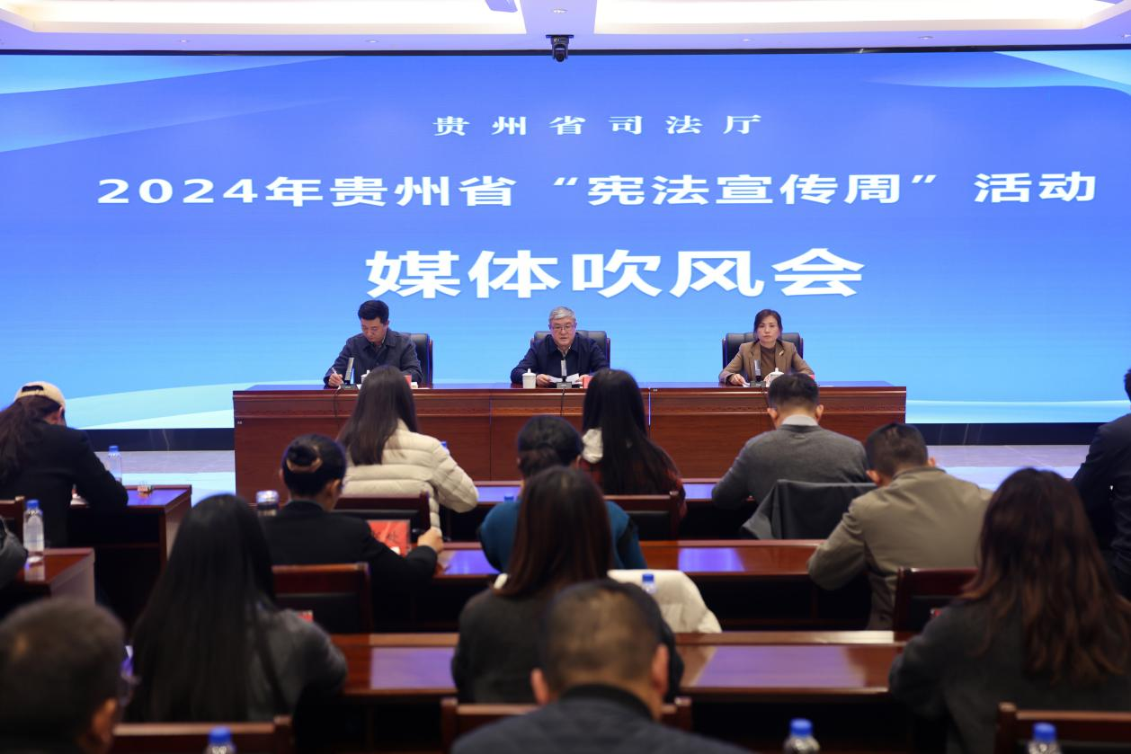 11月27日,貴州省司法廳召開2024年貴州省“憲法宣傳周”活動(dòng)媒體吹風(fēng)會(huì),貴州省司法廳黨委副書記、副廳長魏華松出席會(huì)議并介紹了全省“憲法宣傳周”系列活動(dòng)的背景和相關(guān)情況。