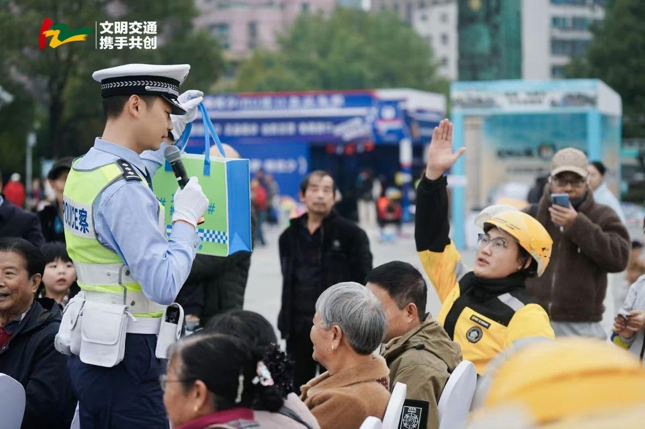 期間,宣傳民警還與現(xiàn)場觀眾進(jìn)行有獎互動,“警小熊”的到來引爆現(xiàn)場氛圍。通過講解典型案例,向群眾現(xiàn)場普及正確佩戴安全頭盔、不超速駕駛、分心駕駛、疲勞駕駛等交通安全知識和道路交通法律法規(guī),潛移默化地不斷提升全民文明交通素養(yǎng)。