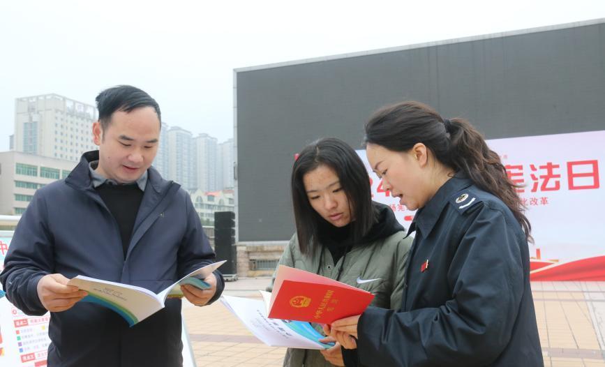 線上通過“法治六盤水”抖音號(hào)開啟直播“帶法”,專業(yè)律師實(shí)時(shí)解答人民群眾提出的問題,發(fā)布憲法公益視頻、以憲法問答等形式向群眾普及憲法知識(shí),切實(shí)推動(dòng)憲法宣傳走實(shí)走深。線下針對(duì)現(xiàn)場咨詢法律問題的市民,普法宣傳志愿者們聚焦典型案例,用通俗易懂的語言向人民群眾講解《中華人民共和國憲法》主要內(nèi)容,并圍繞反電信詐騙、農(nóng)民工工資保障、老年人權(quán)益保障、婦女兒童權(quán)益保障等內(nèi)容開展宣傳活動(dòng)。