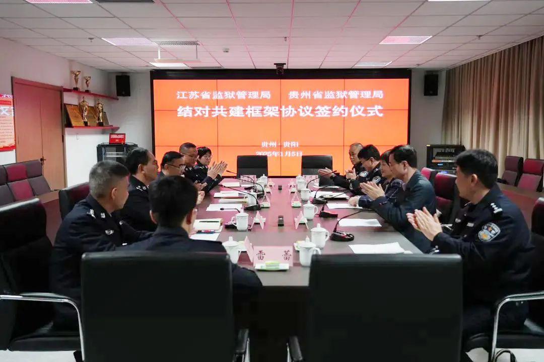 1月5日,貴州省監(jiān)獄管理局與江蘇省監(jiān)獄管理局在貴陽簽訂結(jié)對共建框架協(xié)議。簽約儀式上,雙方共話省域共建合作,展望未來兩省監(jiān)獄發(fā)展。