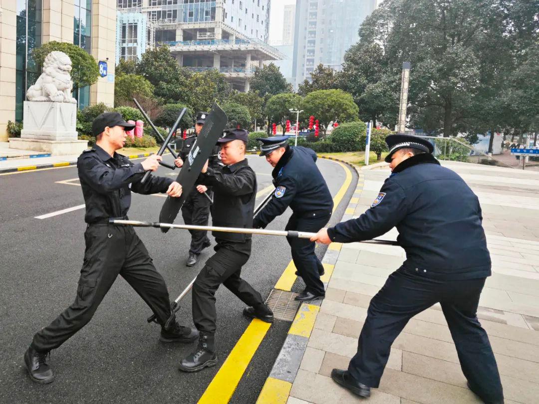 “以練備戰(zhàn)”提升應(yīng)急處置硬實(shí)力。在觀山湖區(qū)民生銀行大樓外,一場(chǎng)“反恐演練”正在進(jìn)行。一名“歹徒”手持利器試圖“闖”入銀行,企圖制造恐慌。銀行安保人員迅速啟動(dòng)應(yīng)急預(yù)案,與民輔警緊密配合,使用防爆盾、防暴鋼叉等裝備與“歹徒”周旋。與此同時(shí),銀行員工有序疏散客戶(hù),確保人員安全。派出所快速響應(yīng),精準(zhǔn)處置,最終成功制服“歹徒”,化解危機(jī)。