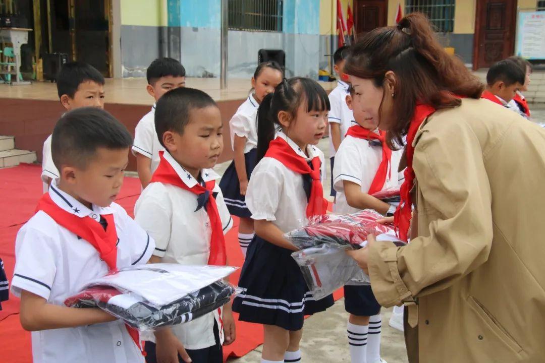 換上新校服的學(xué)生代表說:“感謝叔叔阿姨們送來的新校服,我們一定會好好學(xué)習,長大后也要像你們一樣,幫助更多的人。”
