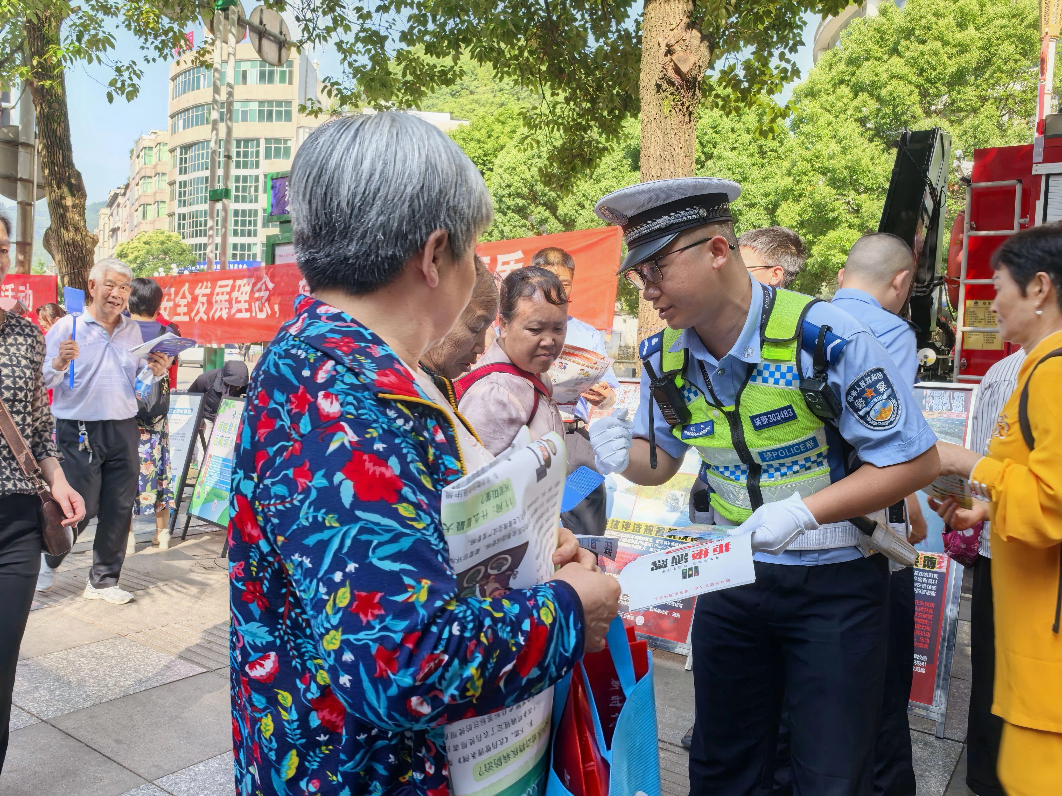 活動現(xiàn)場,氣氛熱烈而有序。民警通過多種形式向過往群眾宣傳安全生產(chǎn)相關(guān)知識。交警部門重點圍繞道路交通安全展開宣傳,現(xiàn)場設(shè)置了交通安全宣傳展板,展示了近年來因不遵守交通規(guī)則而導(dǎo)致的交通事故案例,以直觀的畫面讓群眾深刻認(rèn)識到遵守交通法規(guī)的重要性。同時,交警還向群眾發(fā)放交通安全宣傳手冊,倡導(dǎo)大家遵規(guī)守法明理、安全文明出行。治安部門則聚焦消防安全、防溺水安全以及防電信詐騙等內(nèi)容開展宣傳,提醒群眾提高自身防范意識和應(yīng)急處置能力。
