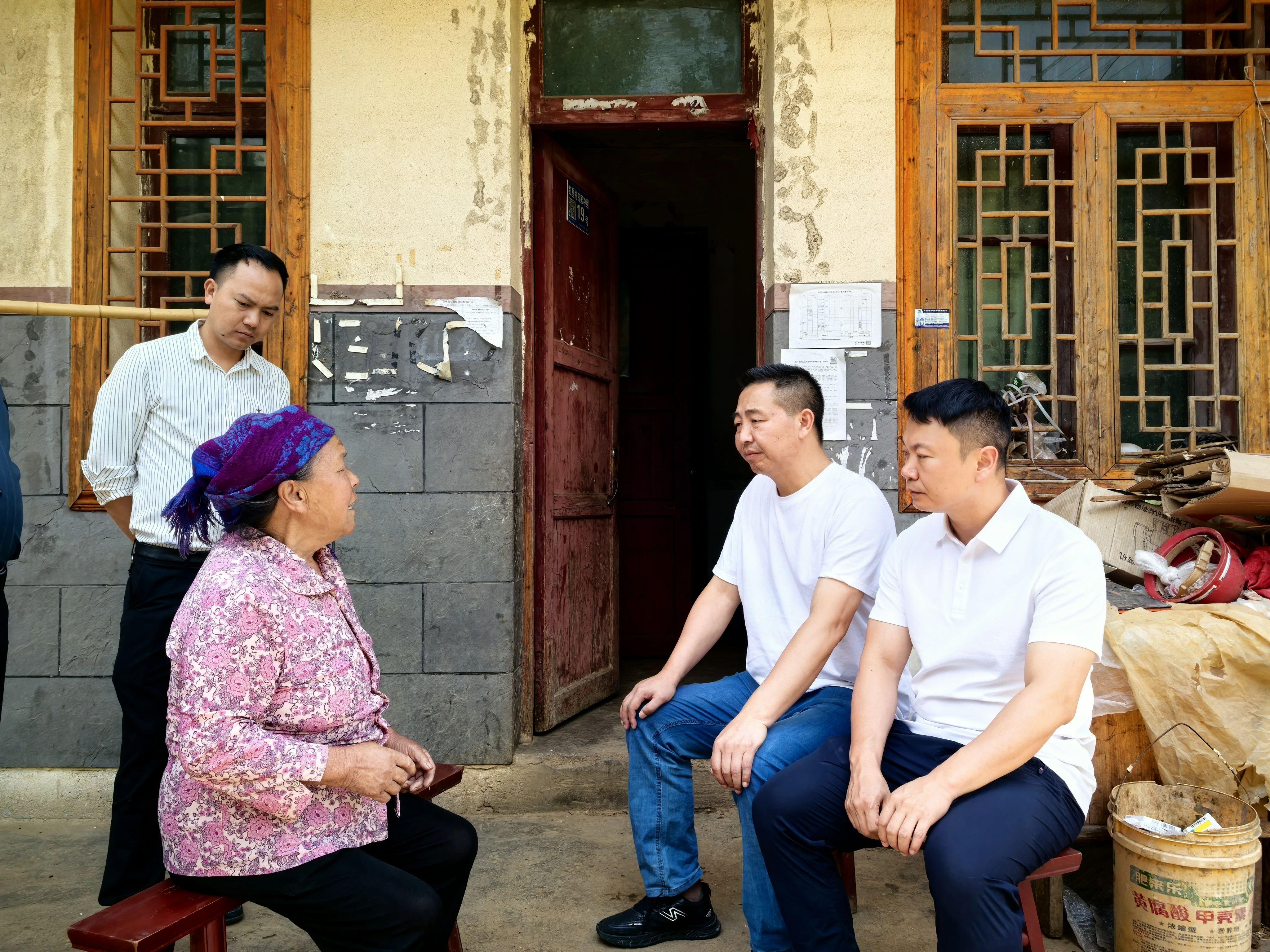 圖為戴永亮(右二)在伍保琴家走訪