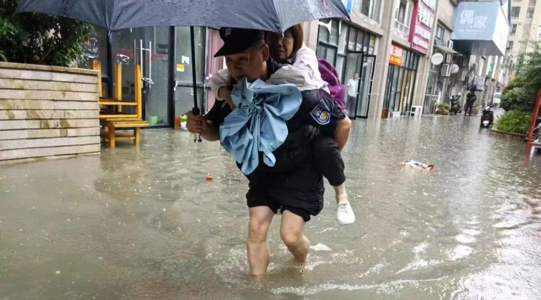 終于,在一居民區(qū)樓下發(fā)現(xiàn)了被困店內(nèi)的六人。此時,店外的積水已深達(dá)30-40厘米,沒過了膝蓋!眼看被困群眾多為行動不便的老人,民警何光偉毫不猶豫地喊道:“脫鞋!挽褲腳!跟我上!”他帶頭與隊(duì)員蹚入渾濁的積水中,將被困群眾一個一個背到安全地帶,同時緊急聯(lián)系消防隊(duì)增援。