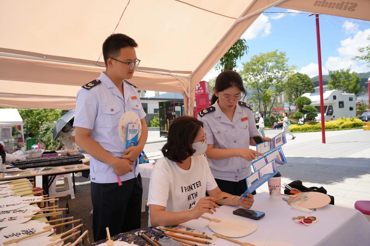 “我一直不清楚電子發(fā)票怎么開,今天稅務(wù)干部拿著流程圖一步步、手把手教我,還講解了相關(guān)稅費(fèi)優(yōu)惠政策,太實(shí)用了!”盤州秦氏非遺面雕攤主秦女士滿意地說。