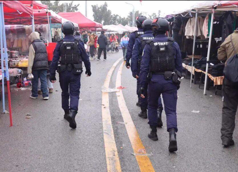 圖為民警在集市巡邏。