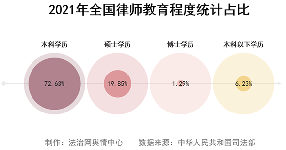從教育程度來看,高學歷是律師隊伍典型特征,本科及以上學歷占比達93.77%。