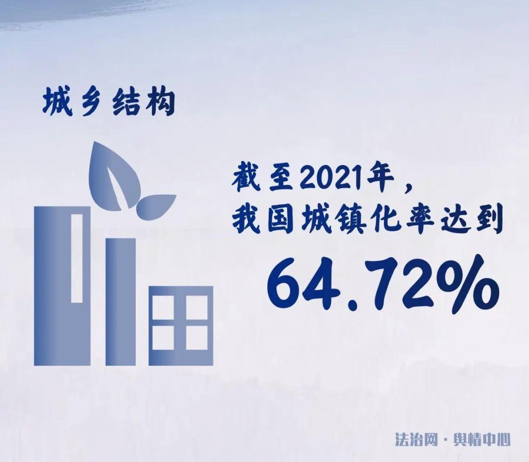 從城鄉(xiāng)結(jié)構(gòu)來看,1982年,我國是一個(gè)農(nóng)村人口占總?cè)丝?0%的典型農(nóng)業(yè)型國家。此后,通過不斷健全各項(xiàng)制度,多舉措改革創(chuàng)新,提高社會(huì)流動(dòng)性,使得中國社會(huì)走上了城市化發(fā)展道路,城市活力得到了進(jìn)一步釋放。我國實(shí)現(xiàn)了從落后的鄉(xiāng)村型社會(huì)向富足的城鄉(xiāng)融合型社會(huì)轉(zhuǎn)變。截至2021年,我國城鎮(zhèn)化率達(dá)到了64.72%。