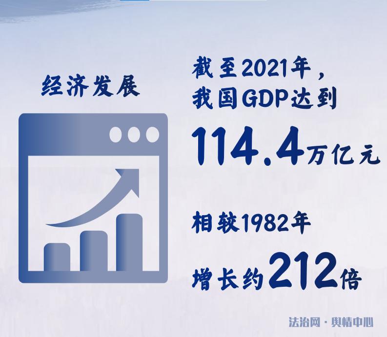 從經(jīng)濟(jì)發(fā)展來看,憲法直接或間接保障經(jīng)濟(jì)制度,通過監(jiān)督手段不斷調(diào)整社會(huì)經(jīng)濟(jì)制度的結(jié)構(gòu),實(shí)行社會(huì)生產(chǎn)方式與生產(chǎn)力的最佳結(jié)合。我國實(shí)現(xiàn)了封閉型經(jīng)濟(jì)弱國向開放型全球經(jīng)濟(jì)大國的轉(zhuǎn)變,國民生產(chǎn)總值從1982年的5373億元躍升到2021年的114.4萬億元,增長了約212倍。