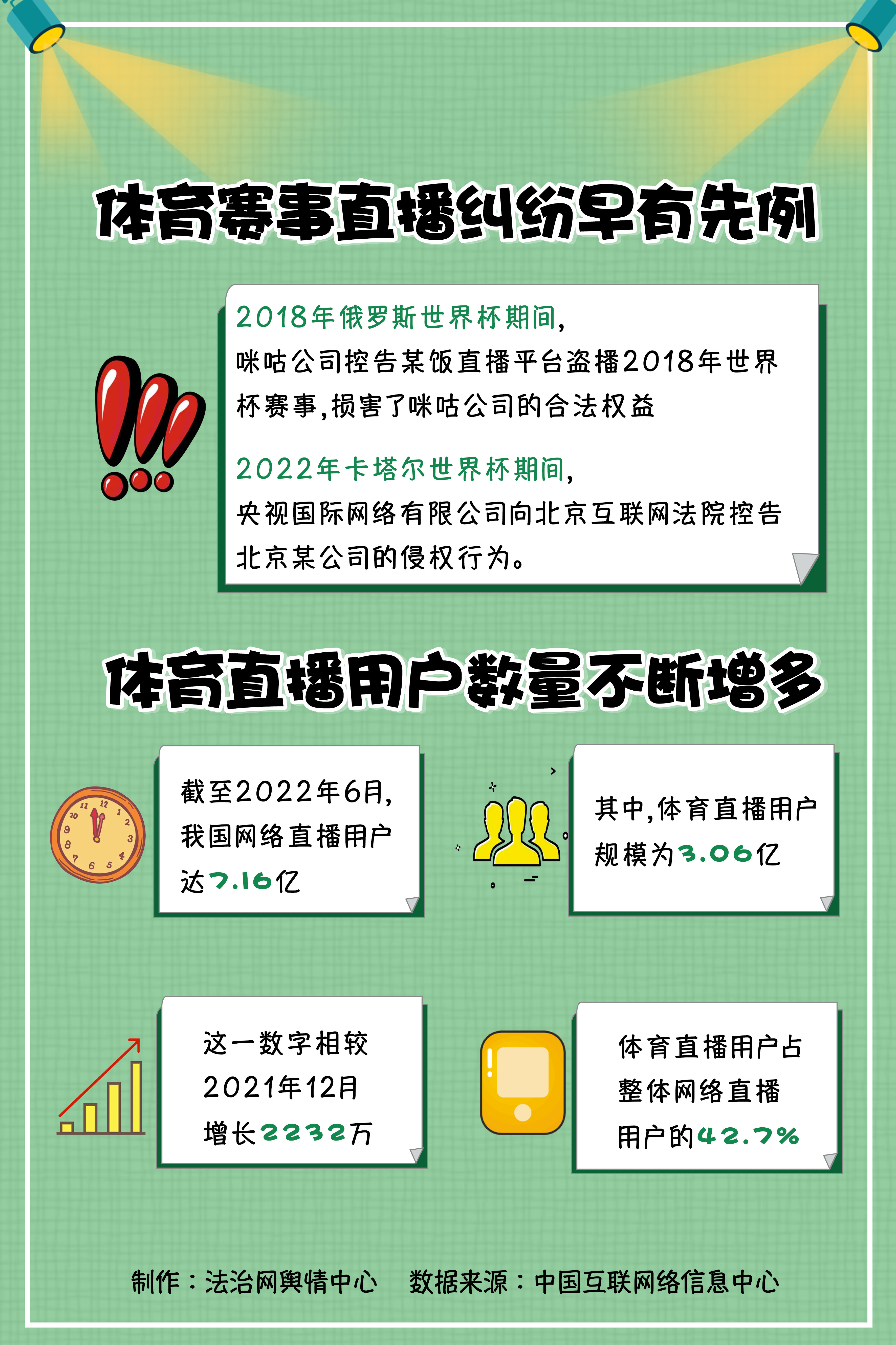 近年來,我國體育直播用戶不斷增多。根據(jù)中國互聯(lián)網(wǎng)絡(luò)信息中心發(fā)布的第50次《中國互聯(lián)網(wǎng)絡(luò)發(fā)展?fàn)顩r統(tǒng)計(jì)報(bào)告》,截至2022年6月,我國網(wǎng)絡(luò)直播用戶達(dá)到7.16億,其中體育直播用戶規(guī)模為3.06億。
