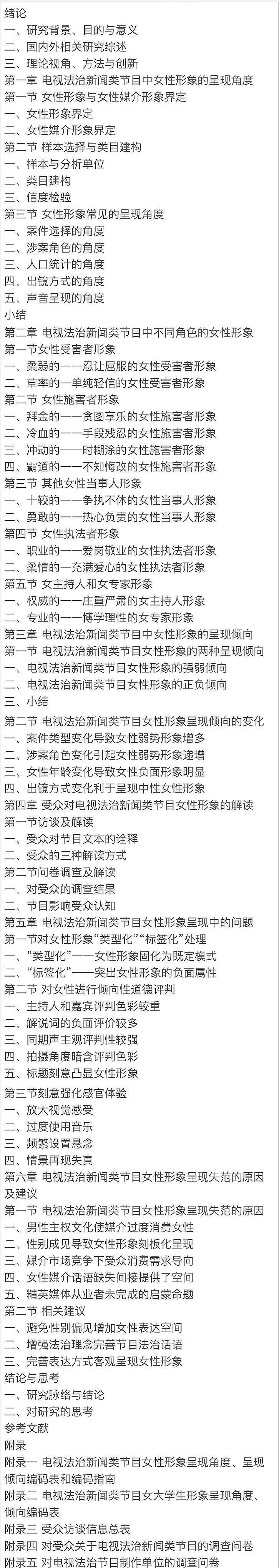 由此,本書(shū)對(duì)電視法治新聞?lì)惞?jié)目對(duì)女性形象的呈現(xiàn)角度、呈現(xiàn)類(lèi)型、符號(hào)運(yùn)用等方面加以研究,回答了電視法治新聞?lì)惞?jié)目對(duì)女性如何呈現(xiàn)、呈現(xiàn)的角度、呈現(xiàn)的傾向以及呈現(xiàn)的方式,指出其中存在的問(wèn)題并探討成因。