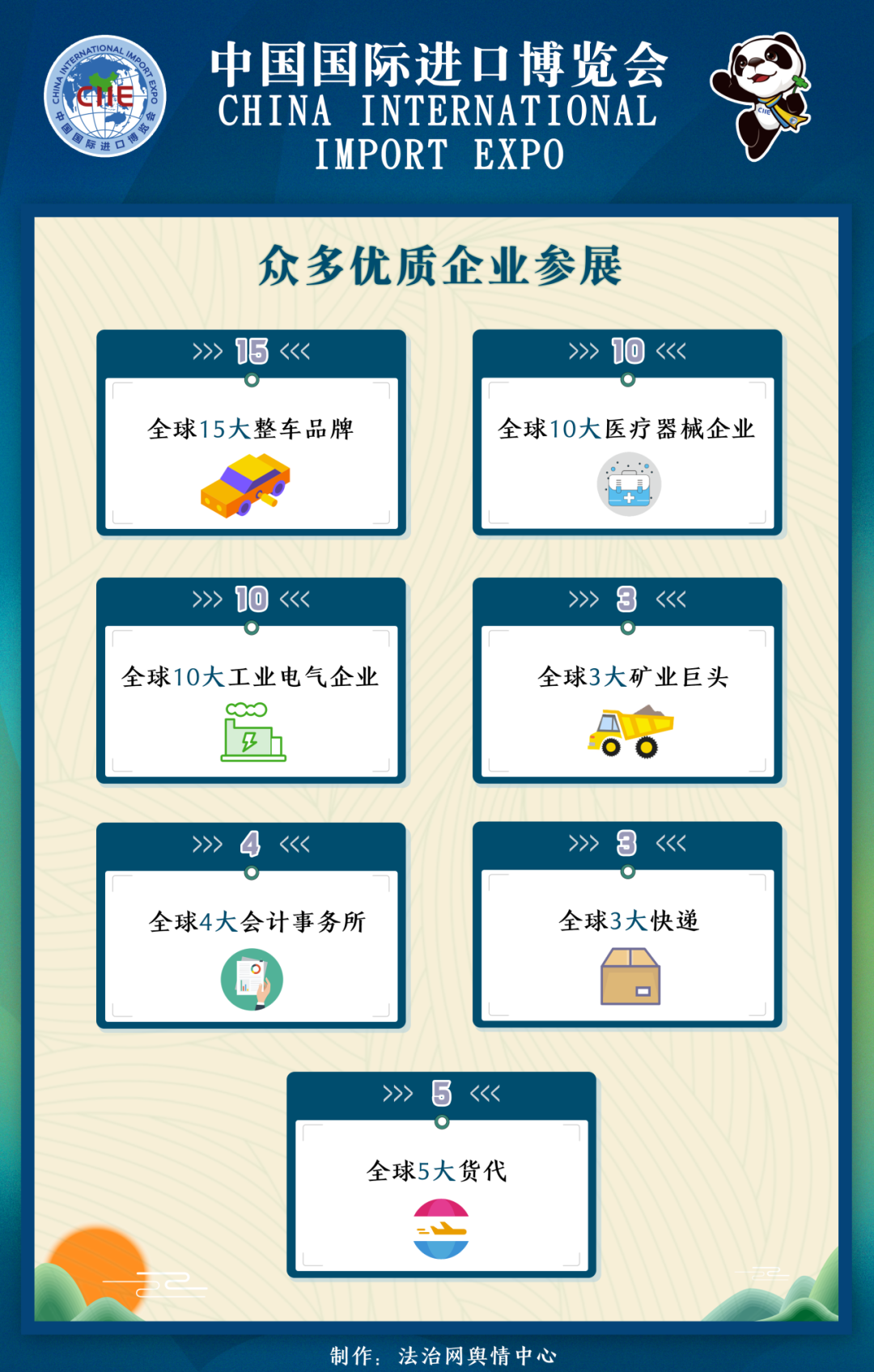 本屆進(jìn)博會(huì)的展商“分量十足”:全球十五大整車品牌、十大醫(yī)療器械企業(yè)、十大工業(yè)電氣企業(yè)、三大礦業(yè)巨頭、四大會(huì)計(jì)師事務(wù)所、三大快遞、五大貨代等均齊聚進(jìn)博會(huì)。同時(shí),多家國際頭部展覽公司宣告回歸,為本屆進(jìn)博會(huì)增色添彩。