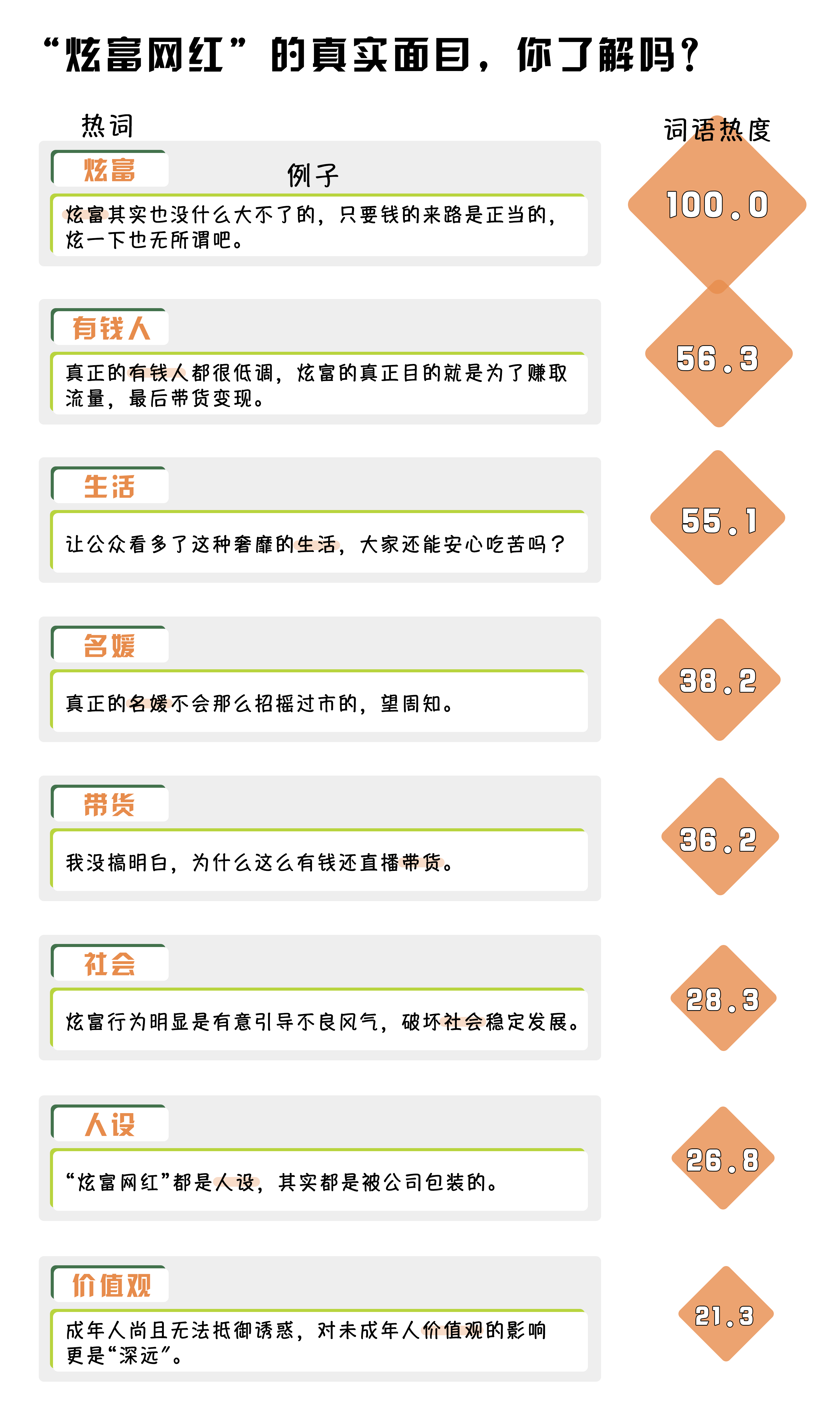 網(wǎng)絡(luò)炫富,鼓吹的是拜金主義、享樂主義、攀比主義,傳遞了扭曲的消費(fèi)觀、價值觀,破壞了正向良好的網(wǎng)絡(luò)環(huán)境。