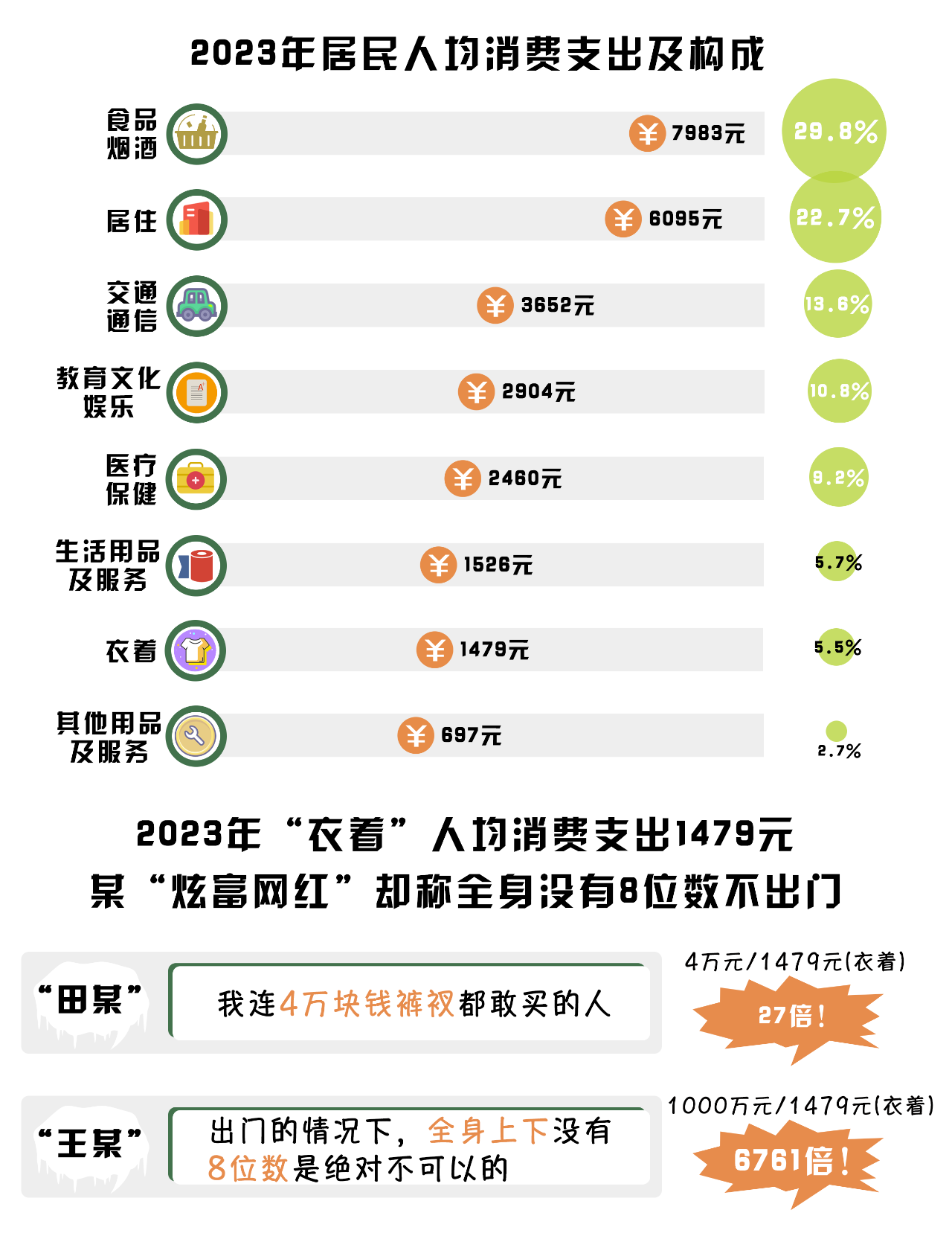 以上網(wǎng)紅炫耀的消費(fèi)能力遠(yuǎn)超普通居民的人均購買力,成為過著“柴米油鹽醬醋茶”生活的工薪者們不可觸及的“夢”。