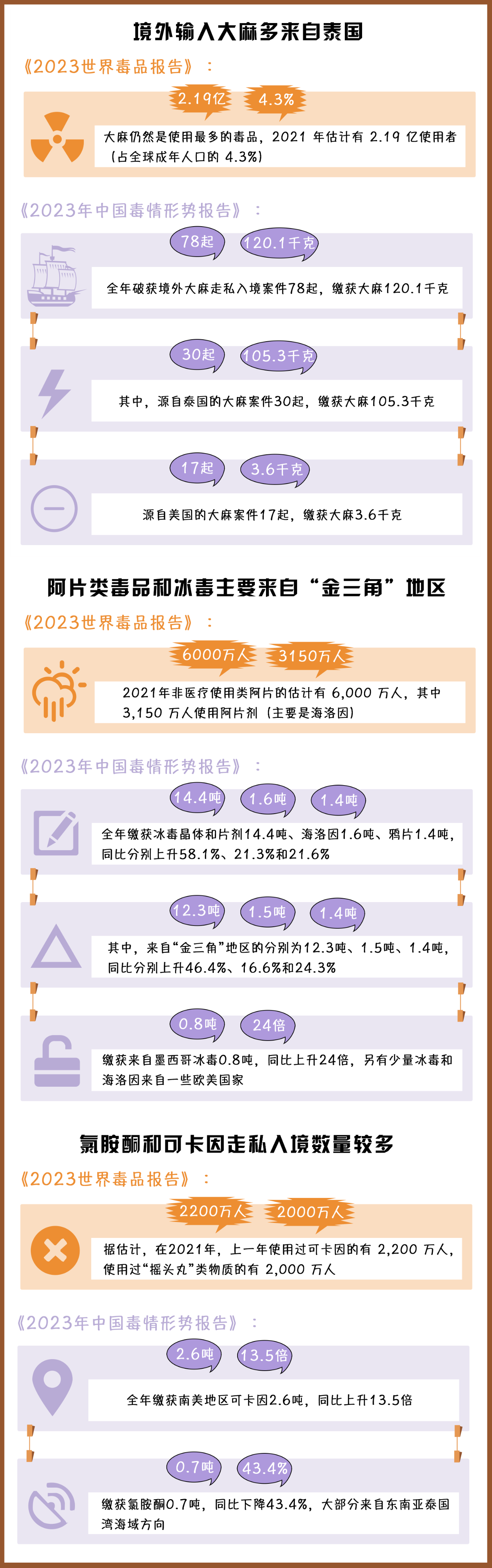 (制作:法治網(wǎng)輿情中心 數(shù)據(jù)來(lái)源:《2023年世界毒品報(bào)告》《2023年中國(guó)毒情形勢(shì)報(bào)告》)