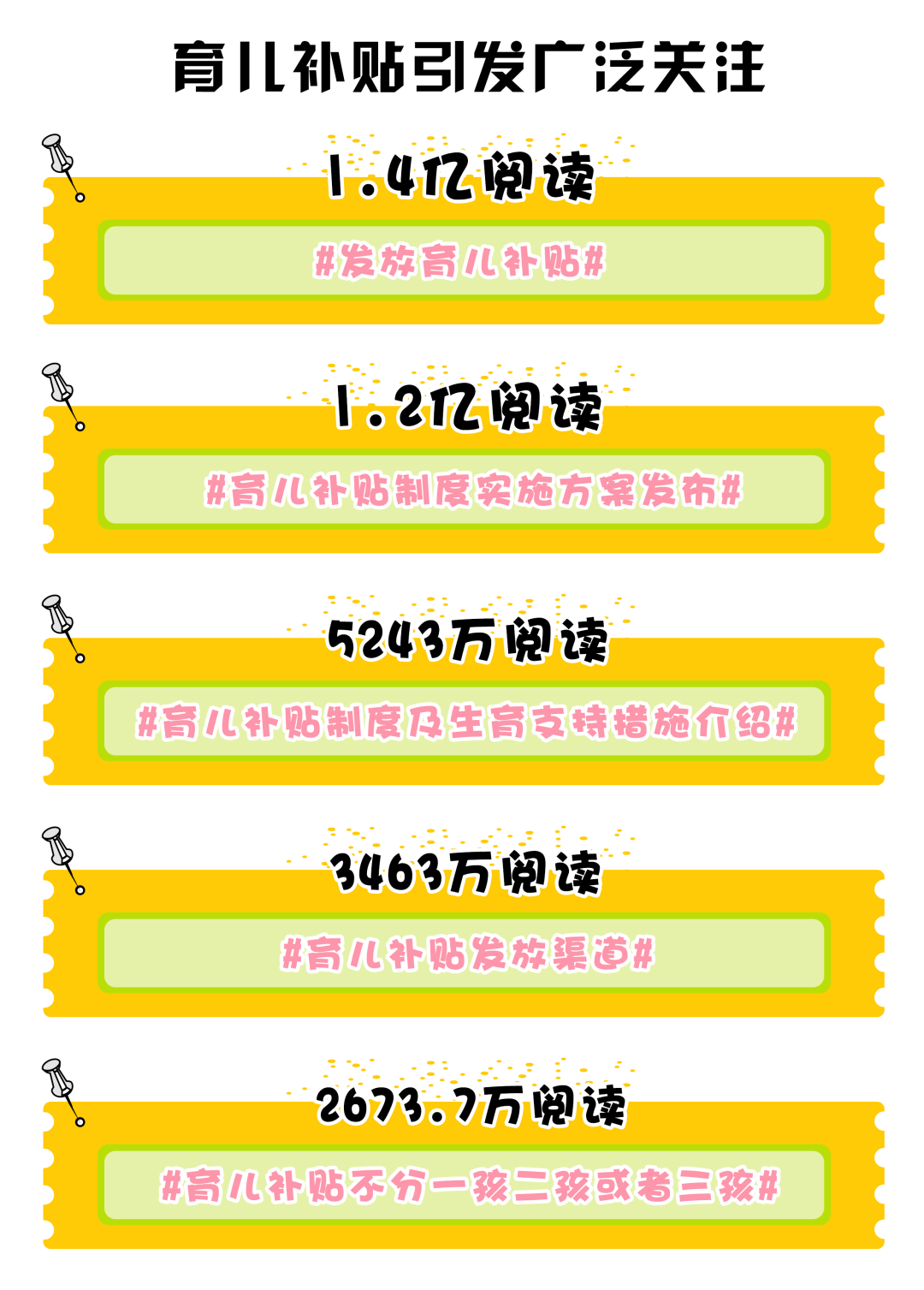 方案一經(jīng)發(fā)出,便迅速聚攏各方目光?!?發(fā)放育兒補(bǔ)貼#”“#育兒補(bǔ)貼制度實(shí)施方案發(fā)布#”相關(guān)微博話題,閱讀量均突破1.2億?!澳液⒆邮欠穹仙觐I(lǐng)要求”“您家孩子‘掙’到3600元了嗎”更成為了寶媽寶爸們?nèi)粘:训男聝?nèi)容。