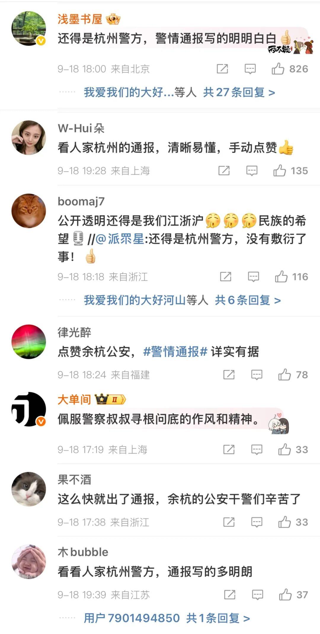 輿論認(rèn)可警方高效的調(diào)查,如網(wǎng)民“@啊妮貝貝-”評(píng)論道,遺棄十年還能查到,杭州公安真不錯(cuò);“@teacherwu09”稱這都能抓住,向警方致敬。對(duì)于警情通報(bào),大V“@淺墨書屋”稱贊警情通報(bào)寫得清清楚楚,明明白白。網(wǎng)民“@W-Hui朵”評(píng)價(jià)通報(bào)清晰易懂,“@律光醉”稱警情通報(bào)詳實(shí)有據(jù),具有說服力。