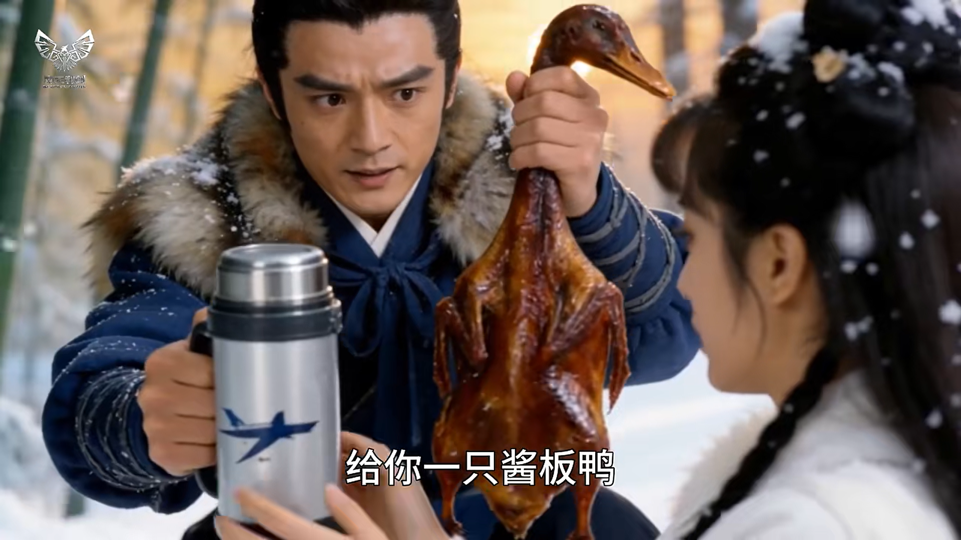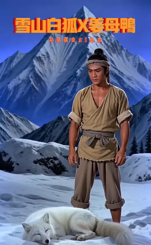 2月27日,抖音用戶(hù)“川娃醬板鴨”發(fā)布一則AI短片《雪山救狐》,視頻將“狐貍報(bào)恩”的片段改編成救狐貍時(shí)送上一只“醬板鴨”,隨后“醬板鴨”轉(zhuǎn)世成人上門(mén)復(fù)仇的故事。其中,“你可曾在雪山救過(guò)一只狐貍”“我不是狐貍,我是那只醬板鴨”等魔性臺(tái)詞與邵氏武俠風(fēng)搭配,立刻吸引網(wǎng)民關(guān)注。隨后,網(wǎng)民通過(guò)AI技術(shù),將“醬板鴨”替換為北京烤鴨、豆汁、胡辣湯等各種元素,接力改編幽默劇情,宣傳各地多樣文化。