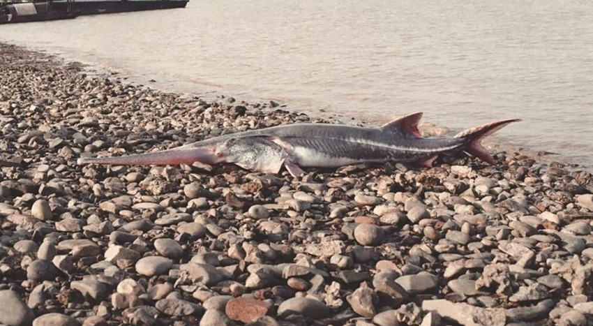 1993年葛洲壩下發(fā)現(xiàn)的白鱘,這可能是留存于世最清晰的白鱘照片 危起偉供圖