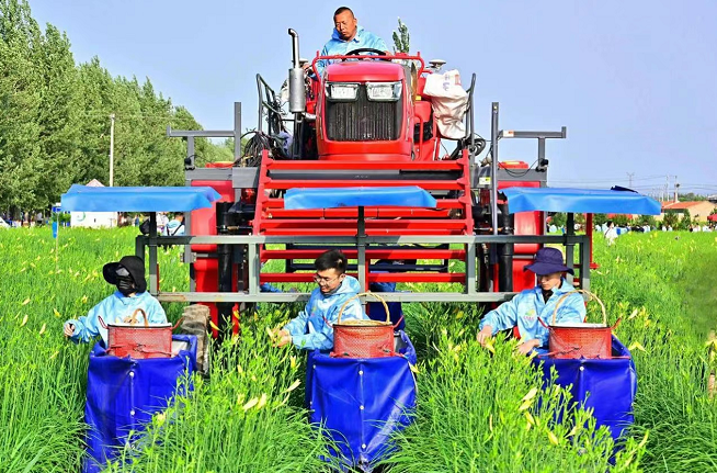 有人帶頭種,還有機(jī)器來(lái)輔助。“2021年,機(jī)器進(jìn)行了幾次試驗(yàn),如今,可以下地試運(yùn)行了?!鄙轿鬓r(nóng)業(yè)大學(xué)教授鄭德聰說(shuō),懸掛式黃花菜輔助采收機(jī)將進(jìn)一步降低人工勞動(dòng)強(qiáng)度,提高采收效率。