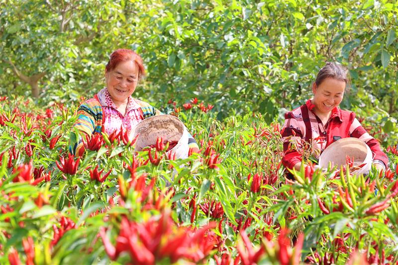 9月17日,村民正在采摘、晾曬辣椒。