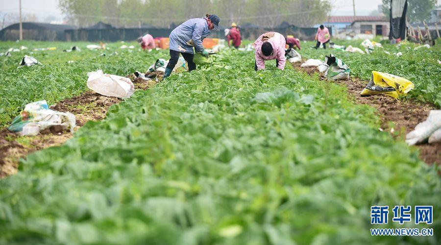 4月5日,在平樂(lè)鎮(zhèn)象莊村蔬菜種植基地內(nèi),農(nóng)民正忙著采收新鮮的包菜。黃政偉 攝