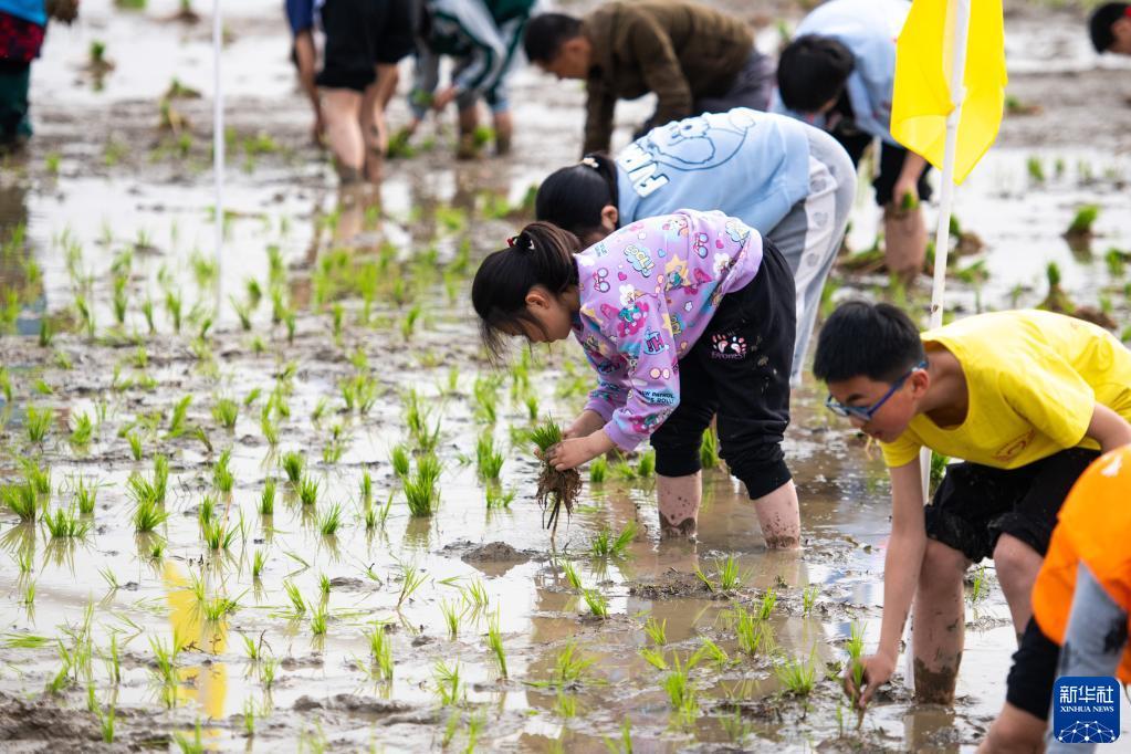 當日,在湖南省長沙市寧鄉(xiāng)市灰湯鎮(zhèn)花果山村舉行的農(nóng)耕民俗文化節(jié)學生研學活動中,孩子們通過開展稻田插秧、捉泥鰍等“農(nóng)趣” 比賽,走進田間地頭,感受勞動帶來的艱辛與快樂。
