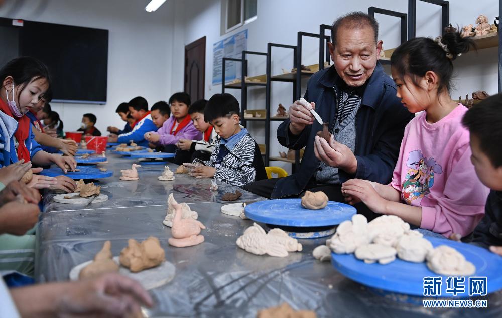 4月12日,陜西省西安市長安區(qū)七旬老人苗春生如約來到本村的周家莊小學,為陶藝泥塑社團的孩子們輔導泥塑技法,這是老人最樂意做的開心事,也是孩子們每周最開心的時刻。