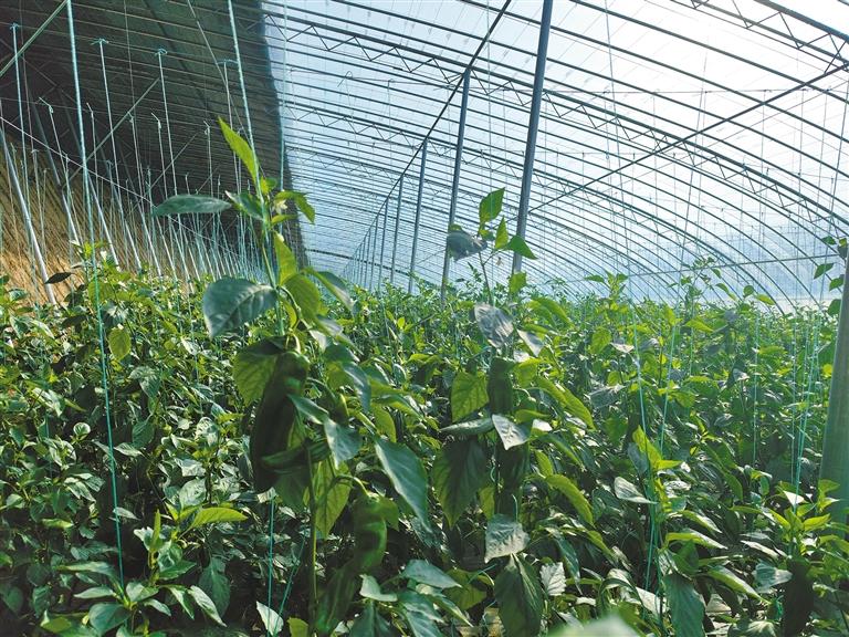 旬邑縣職田鎮(zhèn)萬畝現(xiàn)代設(shè)施農(nóng)業(yè)(高山冷涼蔬菜)基地的青椒大棚。記者 梁宇晴 攝