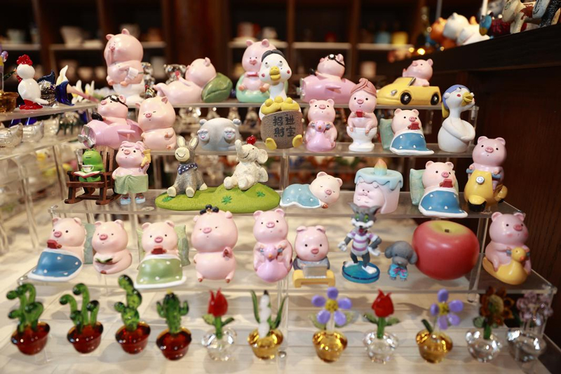 陳家鋪村的“今有光”鄉(xiāng)村創(chuàng)意空間里,擺滿了色彩明快的陶瓷器皿、原生態(tài)木制玩偶及以松陽(yáng)為元素的創(chuàng)意周邊,引得不少游客前來拍照打卡。