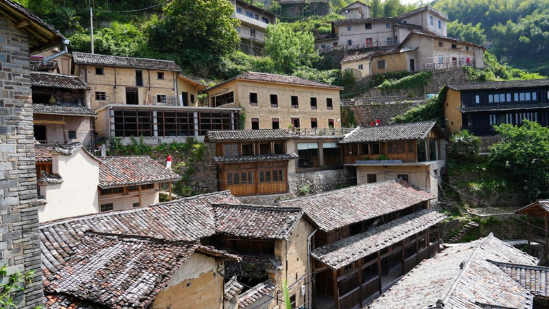 陳家鋪村三面環(huán)山,房屋呈崖居式分布,高低落差達(dá)200多米,錯(cuò)落有致。村里的房屋頂覆青瓦,外敷一種特制黃泥,被雨水沖刷得斑駁點(diǎn)點(diǎn),更顯韻味?!拔覀儽M量保留傳統(tǒng)村落的風(fēng)貌格局,村里現(xiàn)在還有祠堂、香火堂、古民居、社廟這些古文化建筑。”松陽(yáng)縣四都鄉(xiāng)黨委委員、陳家鋪村黨支部書記鮑朝火說。