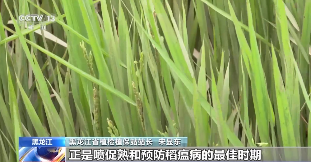 黑龍江省植檢植保站站長宋顯東:像這塊地迫切需要促熟了,正是噴促熟和預(yù)防稻瘟病的最佳時(shí)期。上面這幾個(gè)功能葉還相當(dāng)不錯(cuò),因?yàn)樗井a(chǎn)量形成最重要的還是上面那三四個(gè)葉。