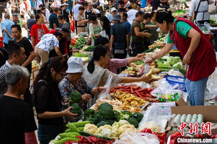 恒合土家族鄉(xiāng)的農(nóng)貿(mào)市場,村民帶著自家種的蔬菜供避暑民眾選購 冉孟軍 攝