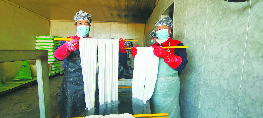 “我家里五口人,只有18畝(即1.2公頃)旱地,僅夠溫飽。一開始我們夫妻倆就在縣城收廢品,想著攢點小本錢做生意。2009年開始收洋芋,并一個村一個村地貼廣告??墒呛髞戆l(fā)現(xiàn),收回來的洋芋短時間內(nèi)根本賣不出去,那怎么辦呢?我們就想辦法,把洋芋加工成了淀粉和粉條,方便儲存。再后來,面對沒有銷路的情況,我和丈夫就推著架子車沿街叫賣。那個時候非常辛苦,晚上要加工粉條,白天要沿街叫賣,每天24小時幾乎沒有休息的時間?!闭f起過去的坎坷經(jīng)歷,任成香的眼里不禁泛起了淚光。