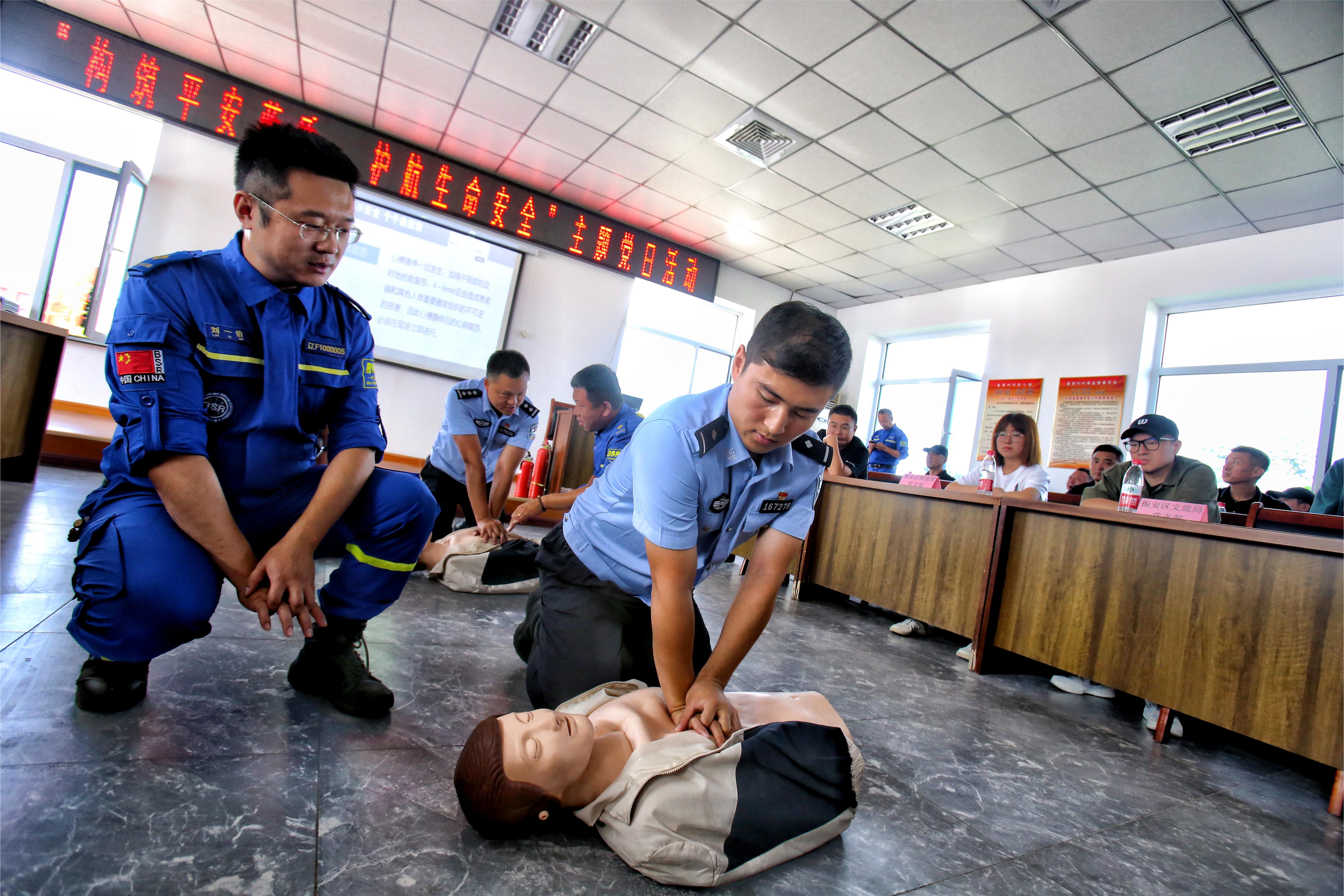 簽約儀式后,丹東藍(lán)天救援隊(duì)現(xiàn)場(chǎng)為120余名骨干黨員開展了應(yīng)急救護(hù)知識(shí)專題培訓(xùn),隊(duì)員們通過理論知識(shí)講解、現(xiàn)場(chǎng)演示、互動(dòng)教學(xué)等方式,以生活中發(fā)生頻率較高的突發(fā)意外為例,生動(dòng)形象地講解了腦梗、心梗、昏迷、休克、中暑、低血糖等急性癥狀發(fā)作時(shí)的急救措施,重點(diǎn)對(duì)腹部沖擊法心肺復(fù)蘇術(shù)、止血包扎、溺水、抽筋、氣道異物梗阻的搶救技巧,以及心臟按壓的基本原理和操作流程等內(nèi)容進(jìn)行講解,并通過互動(dòng)式實(shí)操演練,現(xiàn)場(chǎng)指導(dǎo)要領(lǐng)、糾正方法,確保在場(chǎng)的民警和群眾真正掌握急救技能。