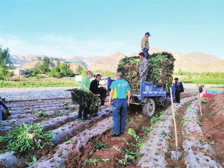 今年6月10日,紅古區(qū)郵政分公司抽調(diào)12名工作人員,迎著朝霞再次趕往紅古區(qū)紅古鎮(zhèn)薛家村,幫助農(nóng)戶(hù)采挖紅葉青筍。
