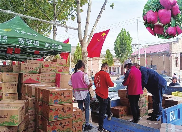 靜寧縣郵政分公司工作人員幫助果農(nóng)打包收寄蘋(píng)果