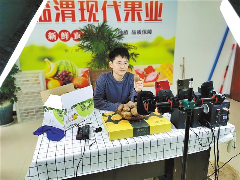 “以前是一桿多蔓,現(xiàn)在改為一桿兩蔓,這樣發(fā)枝均勻,能更好地透光、透風(fēng),種出來的獼猴桃口感好、甜度高、個頭勻稱?!惫r(nóng)董雙武在董楊村獼猴桃高質(zhì)高效示范園中向網(wǎng)友直播科普。像董雙武、李皎這樣精技術(shù)、懂直播銷售的“土專家”不在少數(shù),他們大部分都“畢業(yè)”于獼猴桃試驗(yàn)站,學(xué)到了新技術(shù)、新方法,然后再給農(nóng)戶傾囊相授,使其種植效益顯著提升。