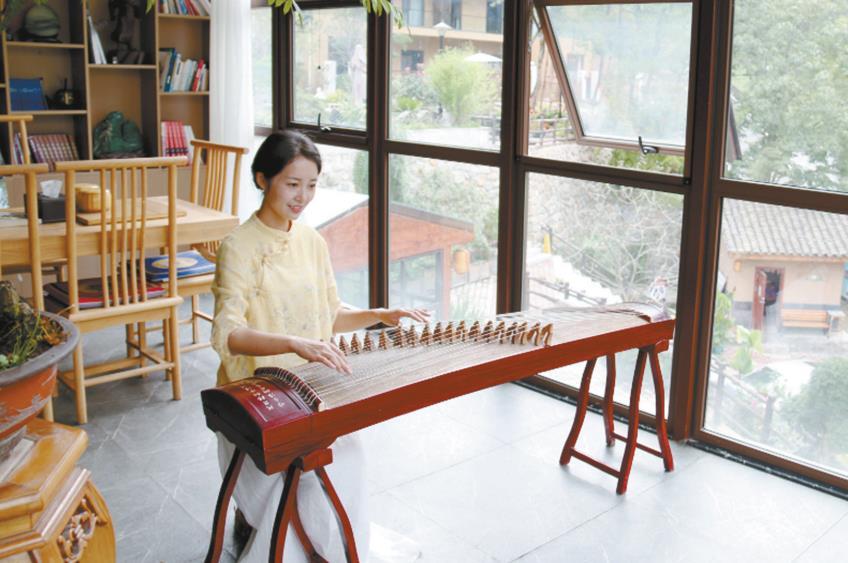 游客在民宿彈琴,享受悠閑時光 通訊員 吳彥峰 攝