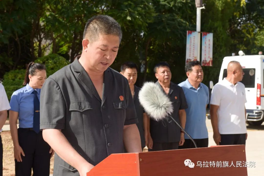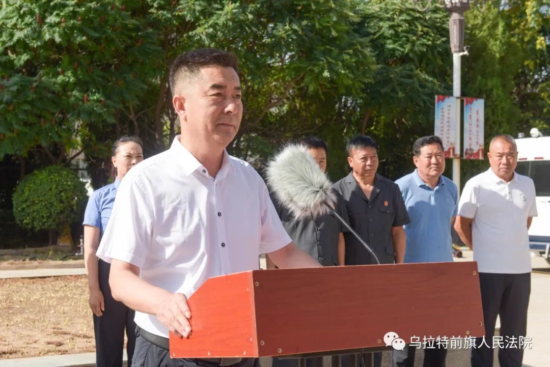 8月7日上午8:30,烏拉特前旗人民法院舉行了執(zhí)行專(zhuān)項(xiàng)行動(dòng)啟動(dòng)儀式。旗政協(xié)主席金山、旗委副書(shū)記政法委書(shū)記秦淮、旗人大常委會(huì)副主任高雷、旗政府副旗長(zhǎng)公安局局長(zhǎng)劉煜、旗檢察院檢察長(zhǎng)楊弘年、旗人民法院院長(zhǎng)張海平、旗司法局局長(zhǎng)吉仁浩雅爾出席啟動(dòng)儀式。旗人民法院領(lǐng)導(dǎo)班子成員、環(huán)節(jié)干部、執(zhí)行局、法警大隊(duì)全體干警參加了儀式。部分市旗人大代表、政協(xié)委員、紀(jì)委監(jiān)委、政法委、公證處工作人員、媒體記者受邀參加啟動(dòng)儀式并全程參與執(zhí)行行動(dòng),見(jiàn)證執(zhí)行全過(guò)程。