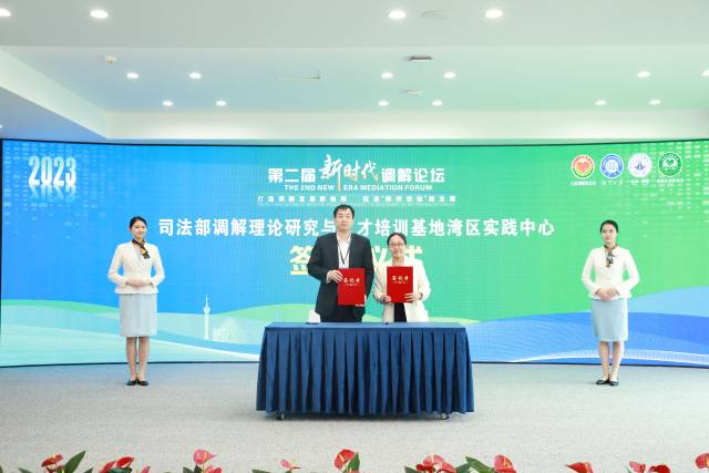 開(kāi)幕式上,人民調(diào)解雜志社副總編輯孟婷婷宣讀了第二屆新時(shí)代調(diào)解論壇征文獲獎(jiǎng)名單,與會(huì)領(lǐng)導(dǎo)為獲獎(jiǎng)作者頒獎(jiǎng)。本次征文共評(píng)出一等獎(jiǎng)?wù)撐?篇、二等獎(jiǎng)15篇、三等獎(jiǎng)25篇、優(yōu)秀獎(jiǎng)20篇,其后舉行了“司法部調(diào)解理論研究與人才培訓(xùn)基地灣區(qū)實(shí)踐中心”簽約與揭牌儀式。