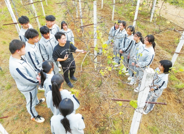 永州工貿學校,學生在學習葡萄剪枝技能(資料照片)通訊員 攝
