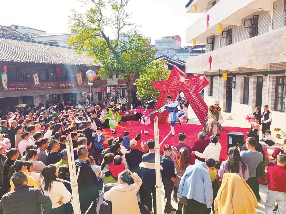 游客在象湖里文化創(chuàng)意街區(qū)欣賞贛南采茶戲 劉黎明 攝