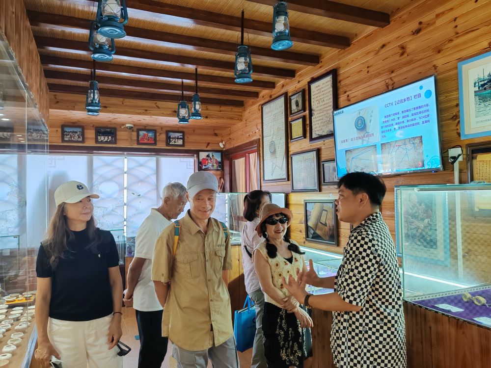 在潭門鎮(zhèn)排港村更路簿博物館,館長王振忠正在為游客講述潭門老漁民的故事 記者 夏天 攝