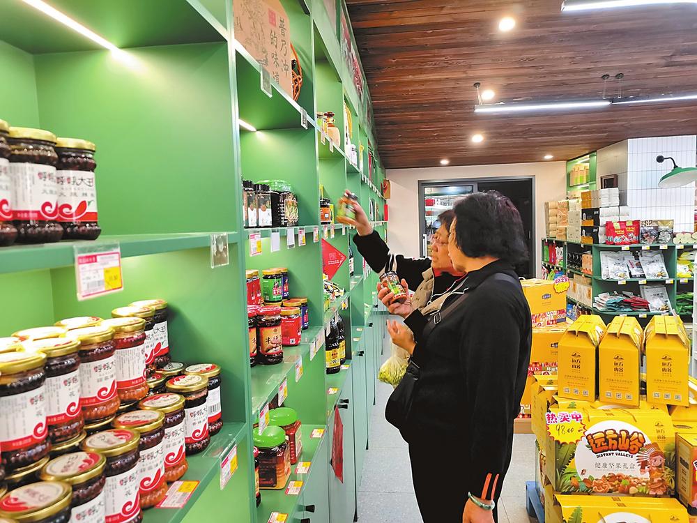 “目前與我們合作的供貨商有56家,主要是玉溪市及通海縣內(nèi)的企業(yè),每天店內(nèi)可以實現(xiàn)銷售額近萬元,宣傳推薦我們通海本地特色農(nóng)產(chǎn)品的同時,也幫助大家增收致富?!蓖ê?h供銷社主任陳開春介紹。