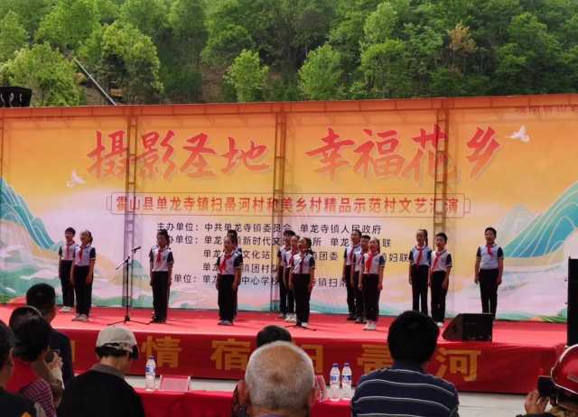 “歡聲笑語響山巔,相約云海里紅杜鵑,屋脊山上看家鄉(xiāng),杜鵑花開滿山崖……”下午三時許,當(dāng)?shù)?8名小學(xué)生組成的“小山雀合唱團”演唱的一曲禮贊家鄉(xiāng)、飽含鄉(xiāng)情的《相約云海紅杜鵑》在攝影家村廣場回蕩,激揚的旋律,嘹亮的歌聲,贏得現(xiàn)場觀眾雷鳴般掌聲。這里,正在舉辦一場春意盎然的文化盛宴——單龍寺鎮(zhèn)掃帚河村和美鄉(xiāng)村精品示范村文藝匯演,這也是該縣今年舉辦的第四場精品示范村群眾性文藝演出。