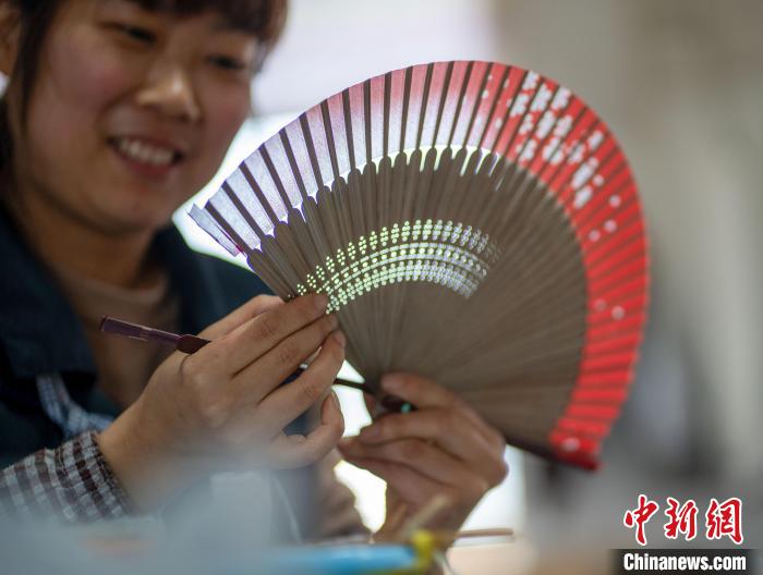 5月14日,工作人員正在為扇骨搭配合適的扇面 李曉紅 攝