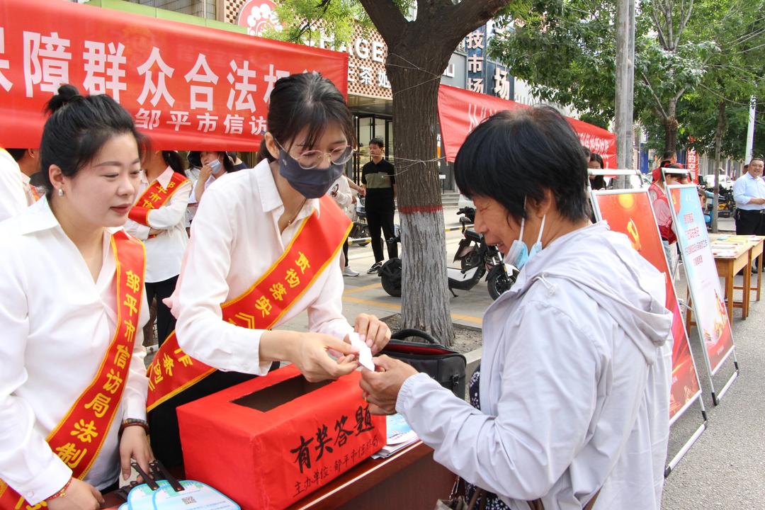 濰坊市信訪局聯(lián)合32個市直部門,威海市區(qū)兩級信訪部門聯(lián)合鎮(zhèn)街,日照市縣鄉(xiāng)三級信訪干部、基層網(wǎng)格員、社區(qū)工作者、法律志愿者,以及德州、濱州等地有關(guān)部門,也紛紛在當?shù)氐幕顒蝇F(xiàn)場通過懸掛宣傳橫幅、擺放宣傳展臺、設置宣傳看板、發(fā)放宣傳手冊等形式,向過往群眾普及信訪工作法治化常識,并就群眾關(guān)心的信訪相關(guān)問題進行了現(xiàn)場答疑,讓群眾對信訪工作有更深入的了解,引導群眾依法理性表達訴求。