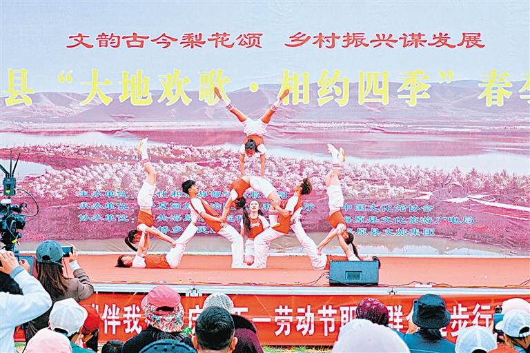 4月19日至21日,由文化和旅游部公共服務(wù)司主辦、自治區(qū)文化和旅游廳及中國(guó)文化館協(xié)會(huì)承辦、海原縣協(xié)辦的“大地歡歌·相約四季”春季村晚成果展示活動(dòng),在該縣關(guān)橋鄉(xiāng)方堡村梨花小鎮(zhèn)火熱舉辦。繁花綻放的數(shù)千畝百年梨園中,歌舞、魔術(shù)、戲曲、雜技等文藝表演輪番上陣、亮點(diǎn)紛呈;海原特色牛雜、燒烤、章魚小丸子、烤馕、手抓餅、肉夾饃、手工洋芋擦擦等鄉(xiāng)味濃郁的特色美食讓人回味無窮。剪紙、刺繡等非遺國(guó)潮集市人頭攢動(dòng),漢服游園者絡(luò)繹不絕,“璀璨梨園”篝火晚會(huì)更是讓游客流連忘返。